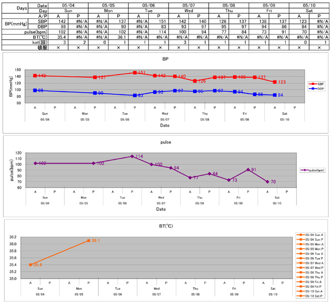 v/cサボりがち。BP変動あり,特に高値の日もあるため,継続してチェックが必要。必要に応じて内科通院も考える。