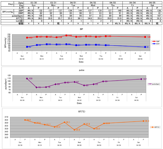 睡眠状態の安定は進歩。これを糧に自信を持ち,安定した精神状態を保ちたい。