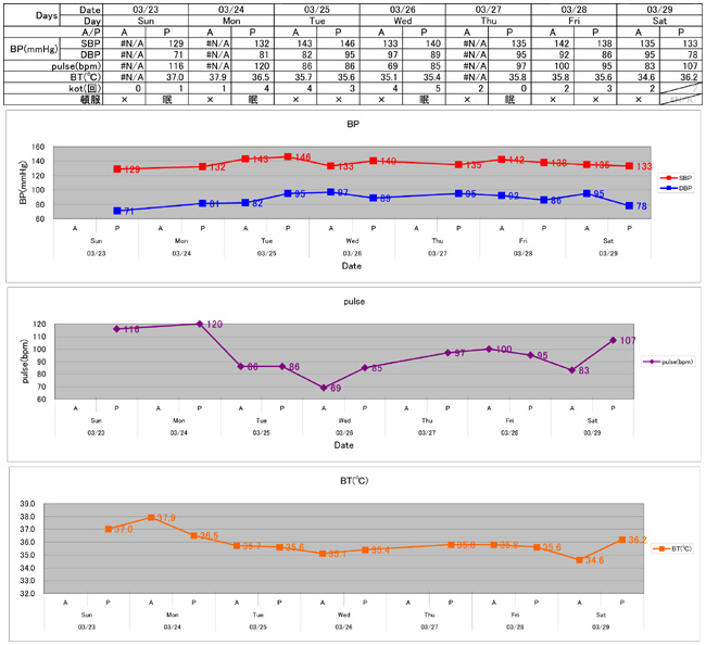 tachycardia(+),palpitation(-)。BP落ち着いてる。
