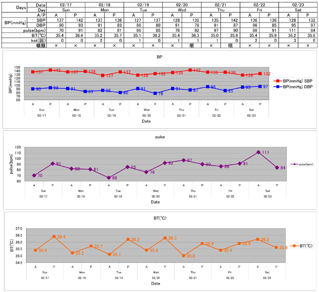 BP上昇傾向,特にDBPが連日高値。