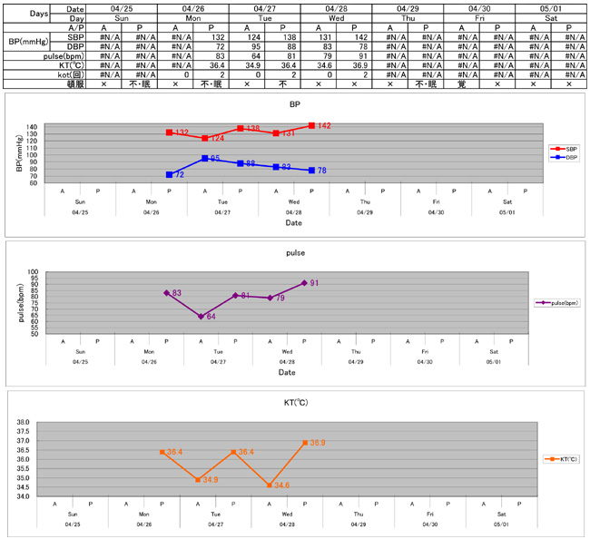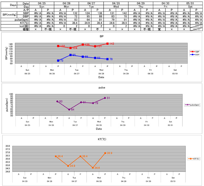 そう言えば,一昨日4/26(Mon)の夕方に,新規項目追加の際にデモデータを用意するために被検者になったが,この時のBPは112/80だったと記憶している。