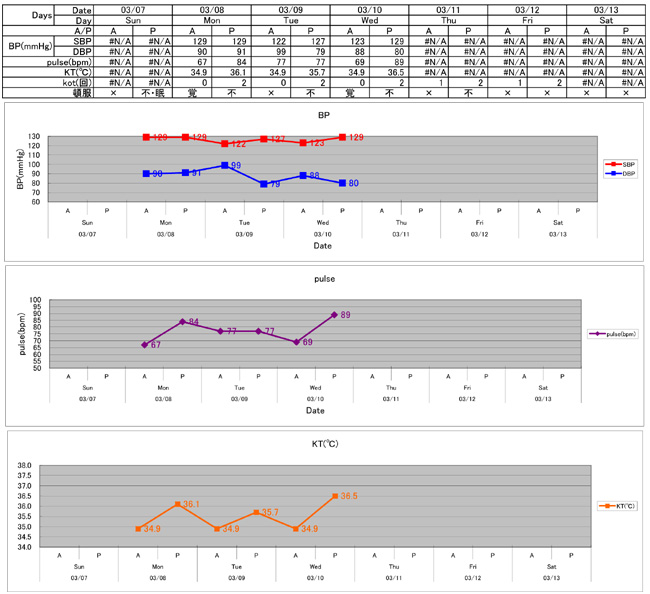 朝のBP 122/88と落ち着いている。夕のBP 129/80とまだ少し高い。